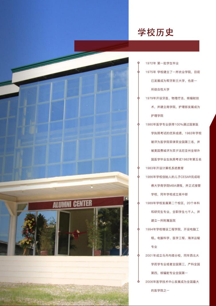 菲律賓萊西姆西北大學(xué)(LECEUM-NORTHMESTERN UNVERSITY )位于菲律賓北部海濱城市達(dá)古潘,離首都馬尼拉國際機(jī)場190公里,離菲律賓克拉克機(jī)場100公里,是一所成立于1969年的私立綜合性大學(xué),專業(yè)涵蓋文學(xué)、教育、法學(xué)、工商管理、工程、計(jì)算機(jī)、醫(yī)學(xué)、護(hù)理、藥學(xué)等,目前有一個(gè)主校區(qū),-一個(gè)研究生院和兩個(gè)分校區(qū),一所附屬醫(yī)院,全職學(xué)生二萬多人,現(xiàn)任校長為Dr.Luzt. Duque-Hammershaimb,圣托馬斯大學(xué)醫(yī)學(xué)博士,在醫(yī)學(xué)研究方面有杰出成就。