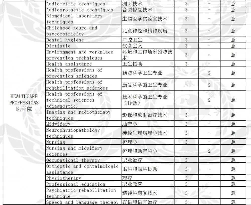 考古學(xué)、藝術(shù)和音樂遺產(chǎn)的歷史與保護(hù)、生物技術(shù)、藝術(shù),音樂和娛樂學(xué)科、哲學(xué)、土木工程、環(huán)境與領(lǐng)土工程、生物醫(yī)學(xué)工程、機(jī)電工程、信息工程、電子工程、計算機(jī)工程、航空工程、化學(xué)與材料工程、產(chǎn)品創(chuàng)新工程、能源工程、管理工程、機(jī)械工業(yè)、文學(xué)、生物學(xué)、分子生物學(xué)、勞工顧問、經(jīng)濟(jì)法、文化旅游設(shè)計與管理、教育與培訓(xùn)科學(xué)、通訊科學(xué)、重組領(lǐng)土并保護(hù)景觀、汽車科學(xué)、建筑和地盤技術(shù)與管理、心理科學(xué)與技術(shù)、認(rèn)知和心理生物學(xué)心理學(xué)、發(fā)展,人格和人際關(guān)系的心理學(xué)、社會和工作心理學(xué)、農(nóng)業(yè)科學(xué)與技術(shù)、葡萄與釀酒科學(xué)與技術(shù)、有機(jī)蔬菜生產(chǎn)技術(shù)與管理、森林與環(huán)境技術(shù)、美食與飲食文化、食品科學(xué)與技術(shù)、化學(xué)、工業(yè)化學(xué)、材料科學(xué)、制藥應(yīng)用科學(xué)、天文學(xué)、物理、光學(xué)與驗光、電腦技術(shù)、環(huán)境科學(xué)與技術(shù)、自然科學(xué)、地質(zhì)學(xué)、數(shù)學(xué)、政治學(xué)、政治科學(xué),國際關(guān)系,人權(quán)、動物保健-保護(hù)動物福利、動物科學(xué)與技術(shù)、衛(wèi)生衛(wèi)生食品安全、社會服務(wù)、社會學(xué)科學(xué)、經(jīng)濟(jì)統(tǒng)計、科技統(tǒng)計、歷史、職業(yè)教育、神經(jīng)療法和發(fā)育性心理測驗、牙齒衛(wèi)生、助聽器技術(shù)、生物醫(yī)學(xué)實驗室技術(shù)、神經(jīng)生理病理學(xué)技術(shù)。