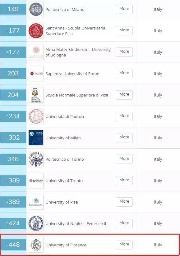 那不勒斯費德里克二世大學(Università degli studi di Napoli Federico II )教學資源雄厚,在所有意大利公立大學中排名一直處于前列,在USNews排行榜、泰晤士世界大學排行榜、世界大學學術(shù)排行榜及QS排行榜上均處排名世界前500強:2018世界大學學術(shù)排行榜上,那不勒斯費德里克二世大學排名第201-300位。在2019 泰晤士世界大學排行榜上,那不勒斯費德里克二世大學排名第301-400位。在2019USNews世界最佳大學排名上,那不勒斯費德里克二世大學排名第201-300位。